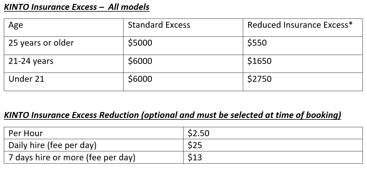 See full info here: https://www.kinto.com.au/faqs#Fees-and-Charges
