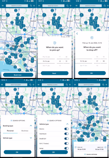 The map will then update with available cars for hire during this time.