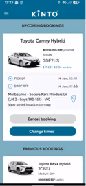 Booking a rental car can be hassle-free with KINTO. Our car hire app has everything in one place, from booking, unlocking, starting the vehicle, managing your booking, and troubleshooting. You can do just about everything from the KINTO app!