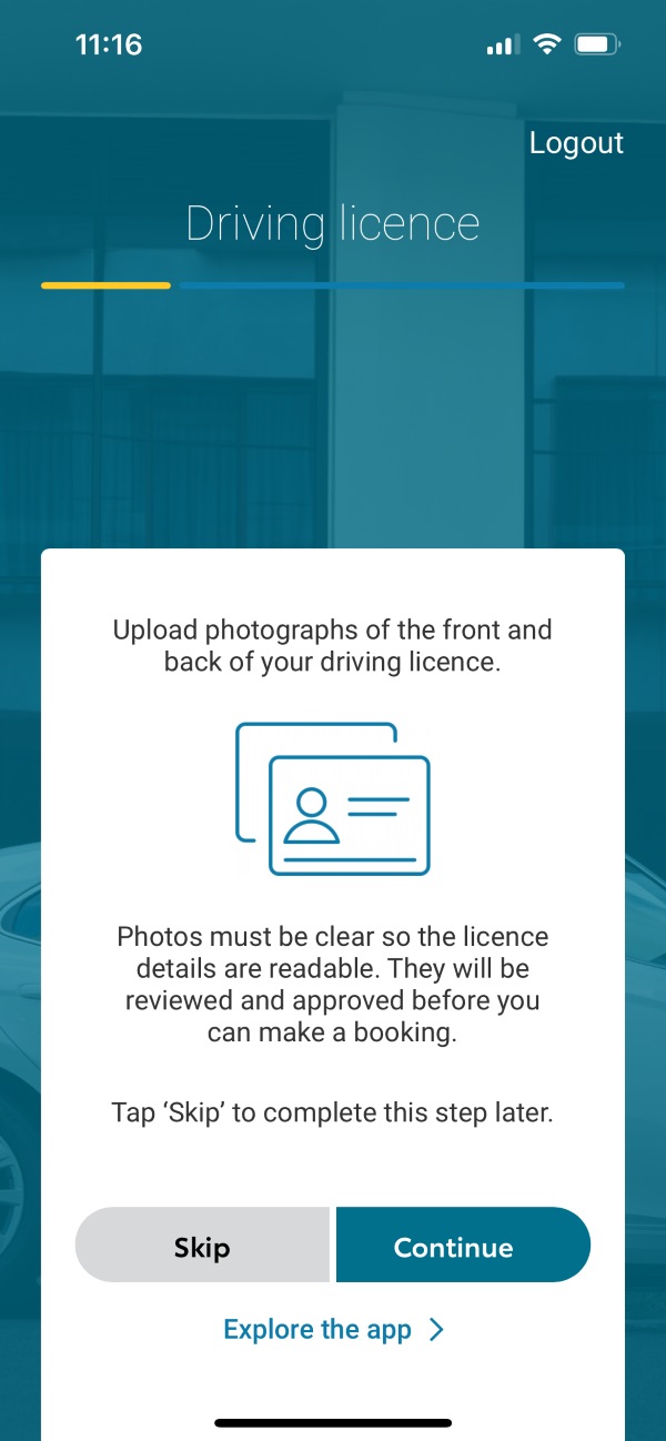 Follow the prompts to get your application ready for approval. For eligibility and identity verification purposes, take a clear photo of the front and back of your licence, then upload them to the car hire app.