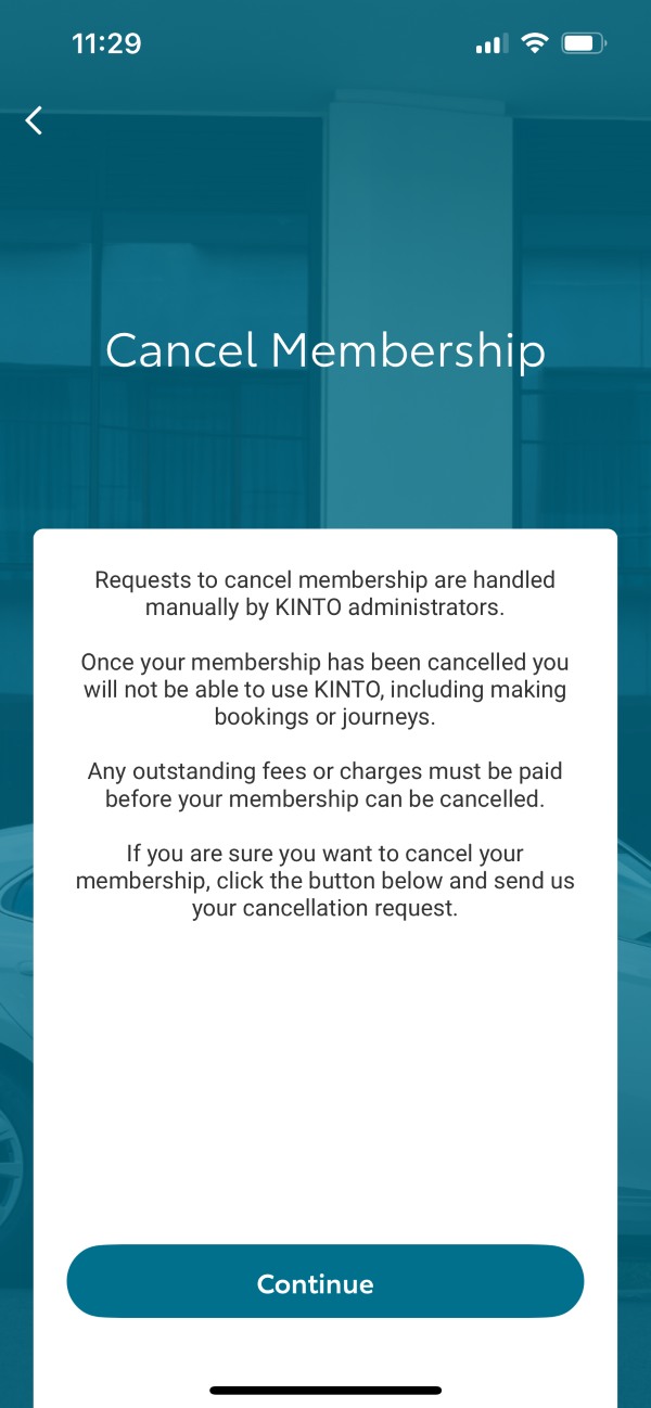 Cancel membership in the unlikely case that you want to close your KINTO account, this is where the process can be started.