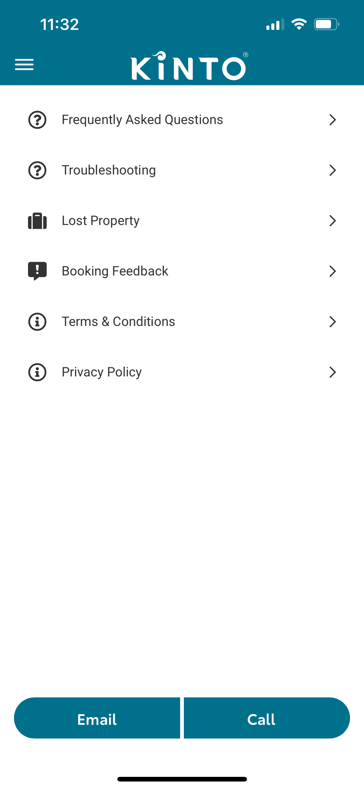 This final section of the KINTO app is where to go for assistance.