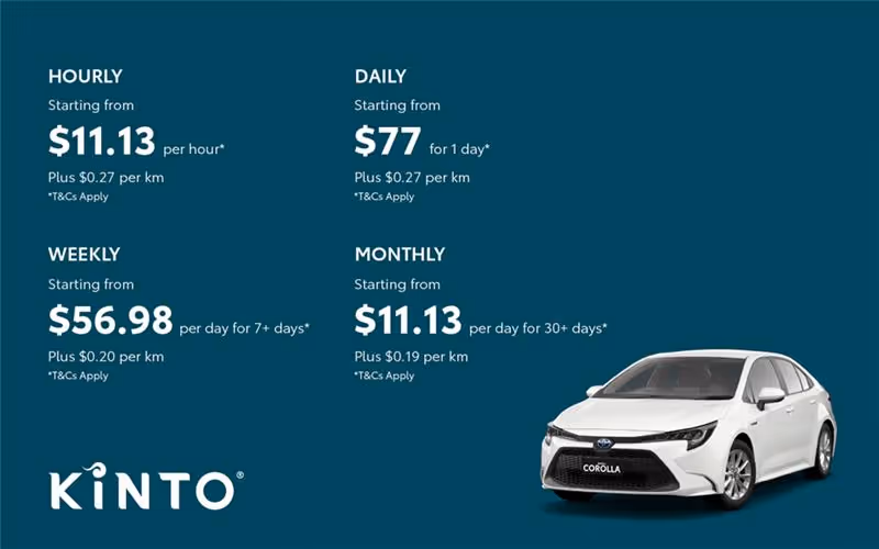 KINTOs' all-inclusive structure makes budgeting easier while removing the admin of ownership. The Toyota Corolla’s everyday practicality, paired with KINTO's inclusive pricing, creates a hassle-free experience that suits busy schedules. Members can just book and go!